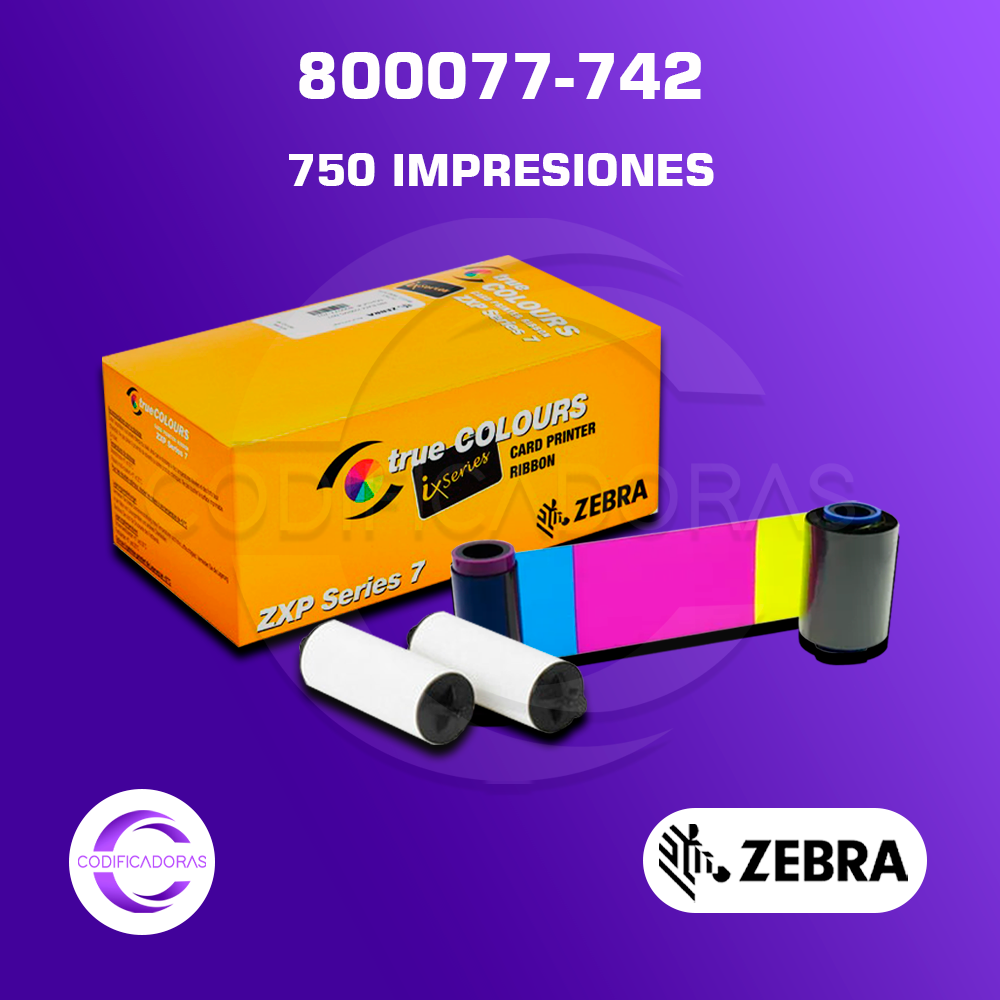 Cintas Ribbon Zebra 800077-742 para impresoras industriales de carnets ZXP72 y ZXP74